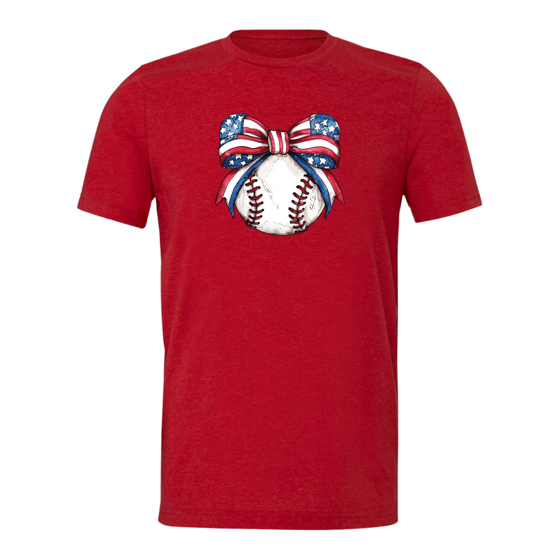 AMERICAN FLAG BOW DESIGN/BASEBALL GRAPHIC TEE/COQUETTE BASEBALL DESIGN