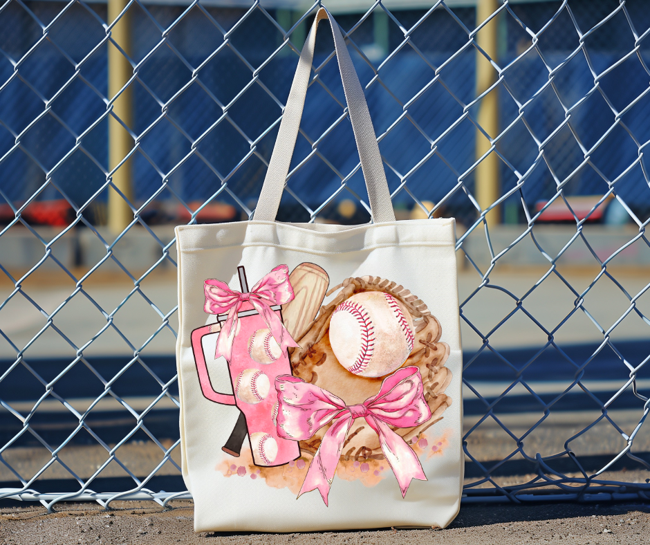 This canvas tote bag is perfect for the stylish baseball lover. With a playful coquette baseball girl design, it's sure to catch some attention. Measuring 15x16 inches and featuring a 27 inch handle, it's the ideal size for carrying all your game day essentials in style. Batter up!