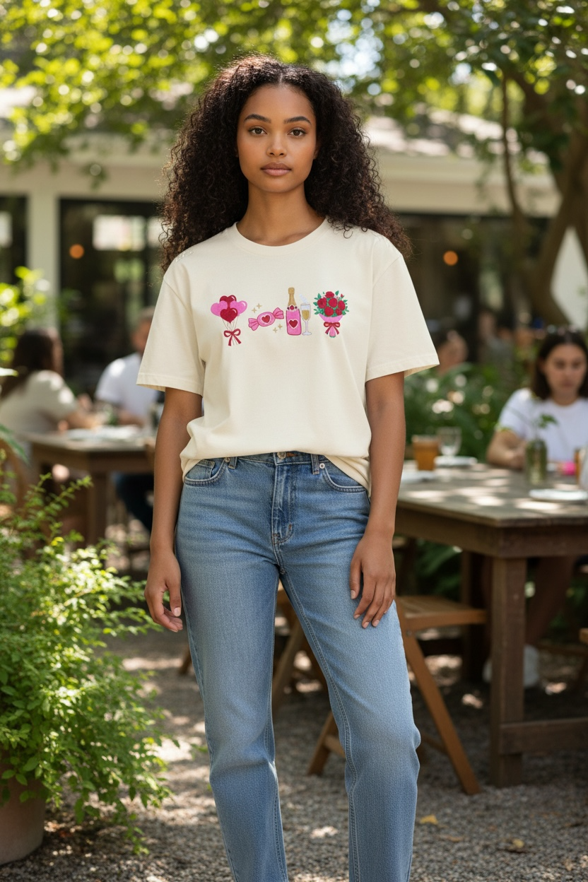 Our Valentines Coquette T-Shirt design is embroidered on our 100% ringspun cotton Comfort Colors fabric that’s soft-washed and garment-dyed. Weighing in at 6.1 oz., this heavyweight tee features a cozy 1" ribbed collar, double-needle stitched sleeves and hem for long-lasting wear, plus twill taped shoulders. This tee’s durable, preshrunk fabric handles it all while keeping colors bright and fit comfy—perfect for your next holiday festivities.