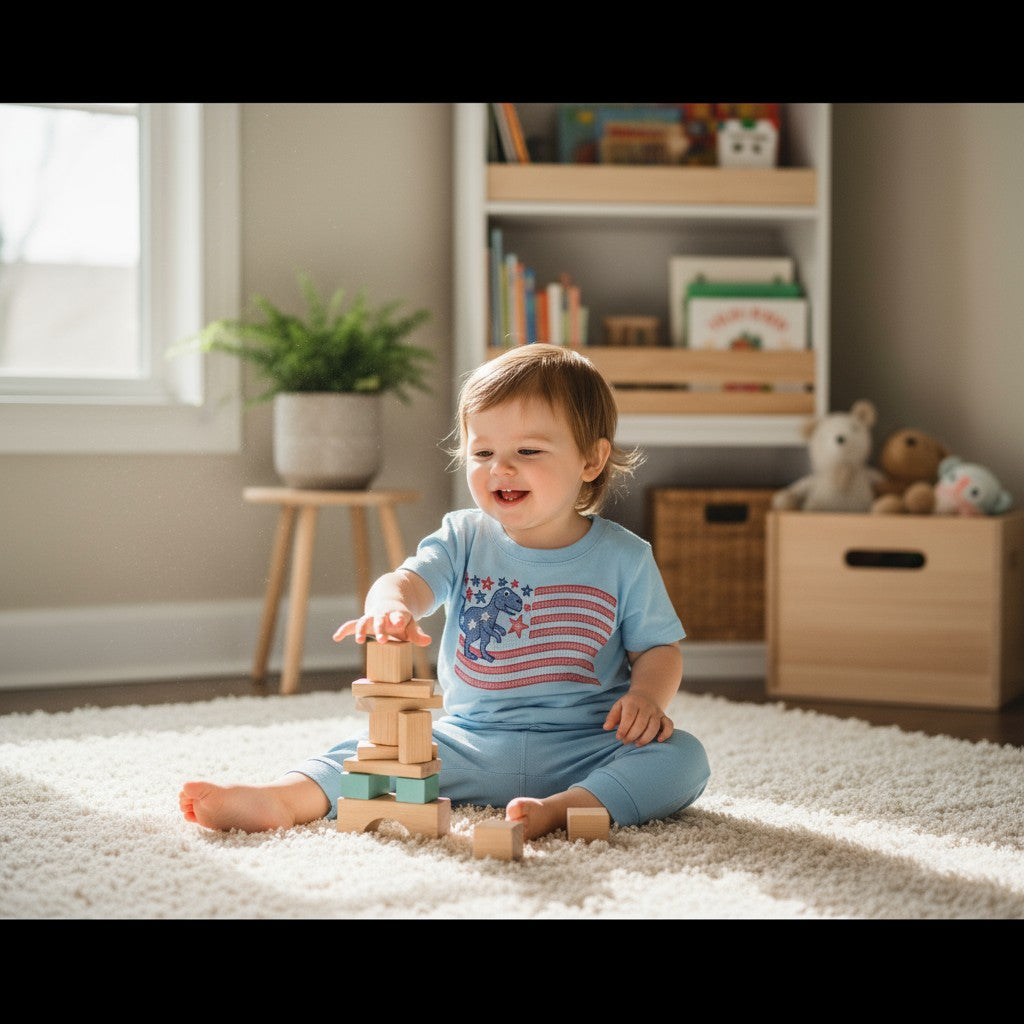 Get your little one ready to show off their patriotic spirit with our Dinosaur Flag design t-shirt! And to make it even more special, you can personalize it just for them. No more mix-ups with whose shirt is whose. Our Boy's Premium Short Sleeved Tee is made from high quality 100% combed cotton interlock cotton, with a naturally tapered shoulder and ribbed neckline for the perfect fit.