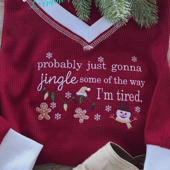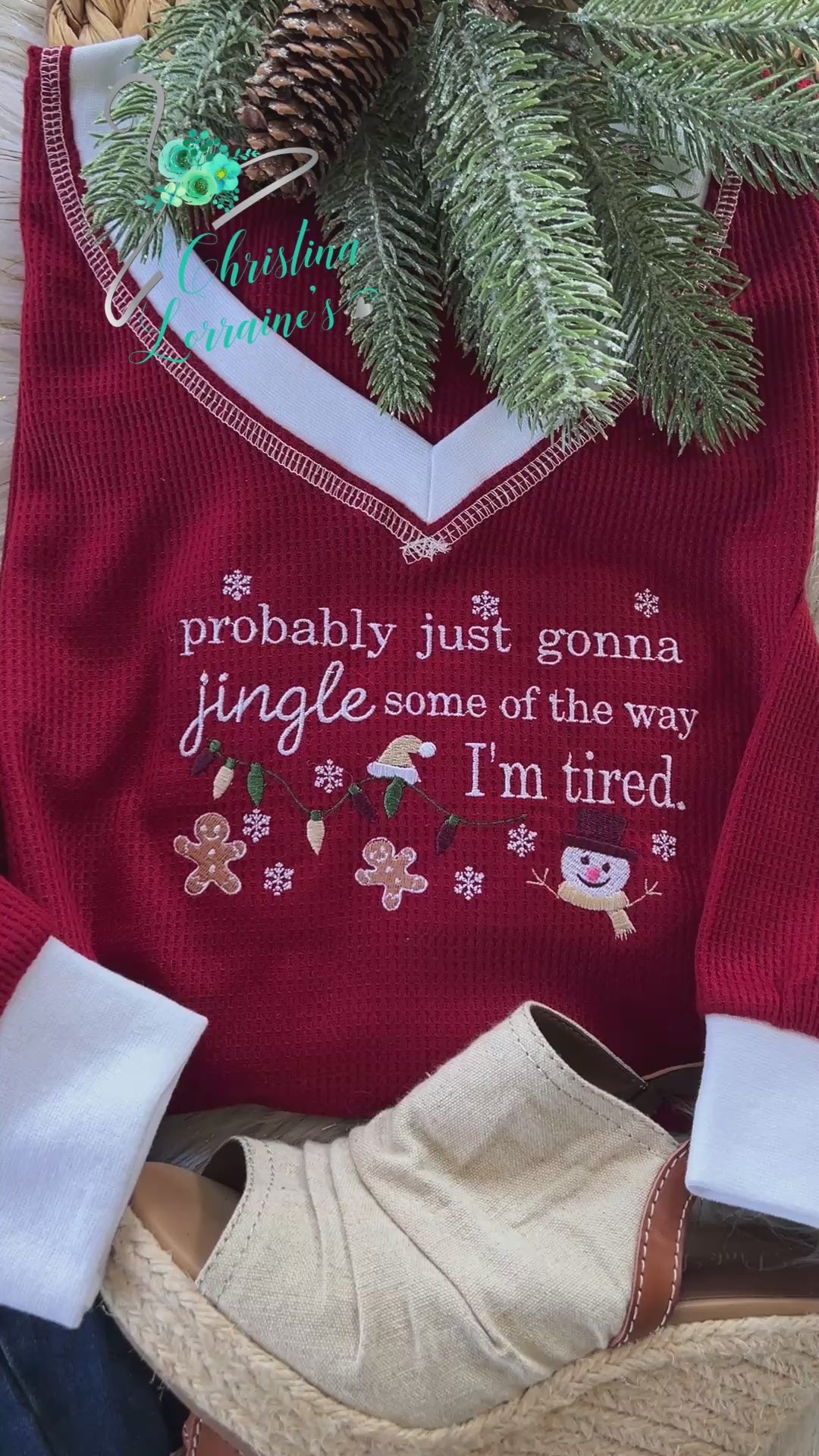 JUST GONNA JINGLE SOME OF THE WAY V-NECK WAFFLE WEAVE LONG SLEEVE TOP