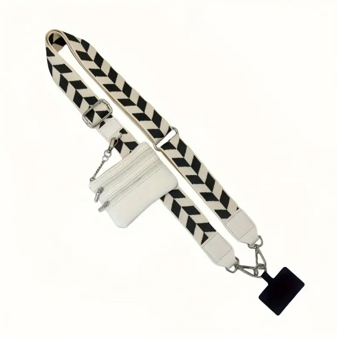 Mobile Phone Crossbody, Adjustable, Lanyard/Black & White