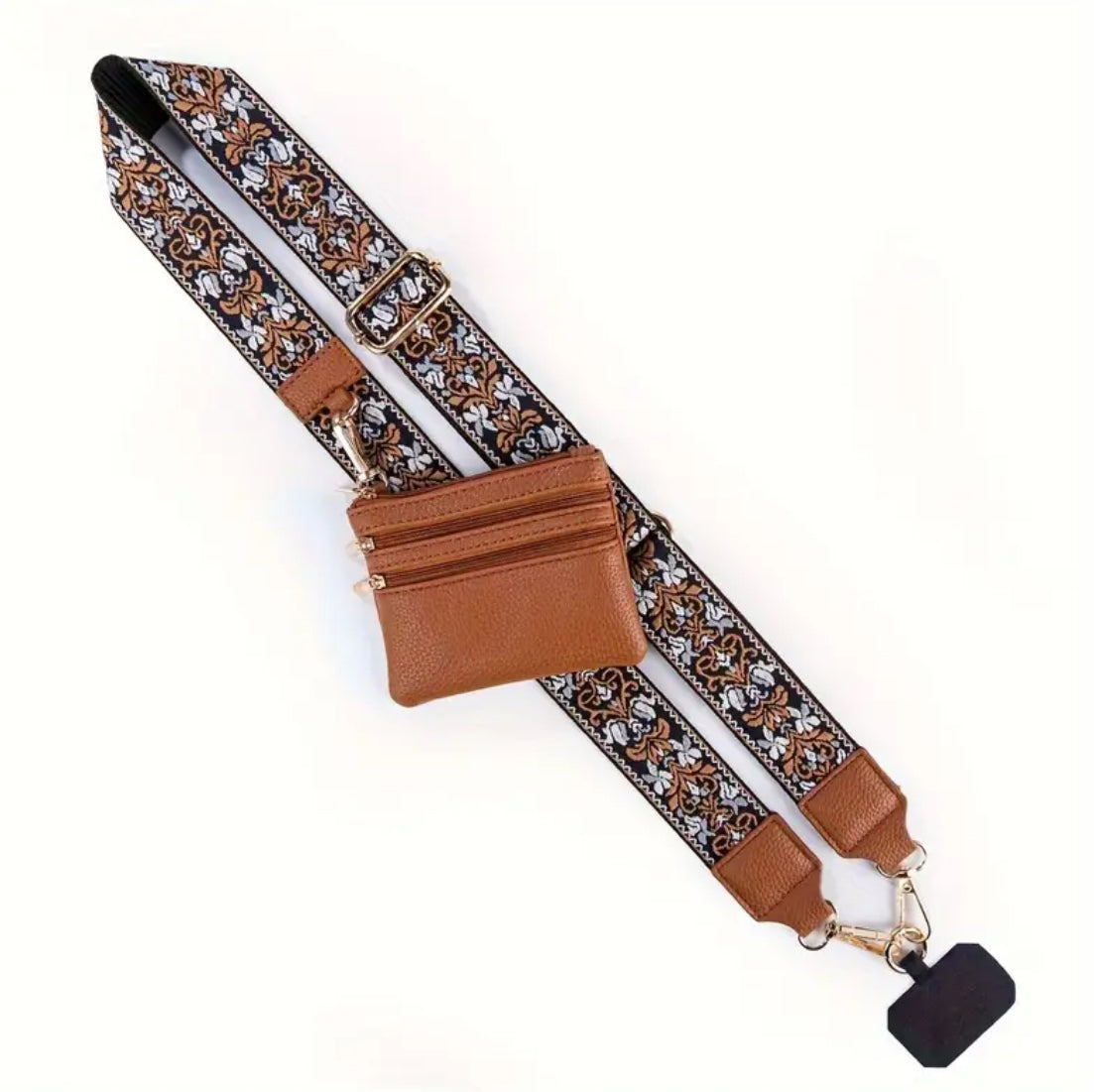 Mobile Phone Crossbody, Adjustable, Lanyard/Brown