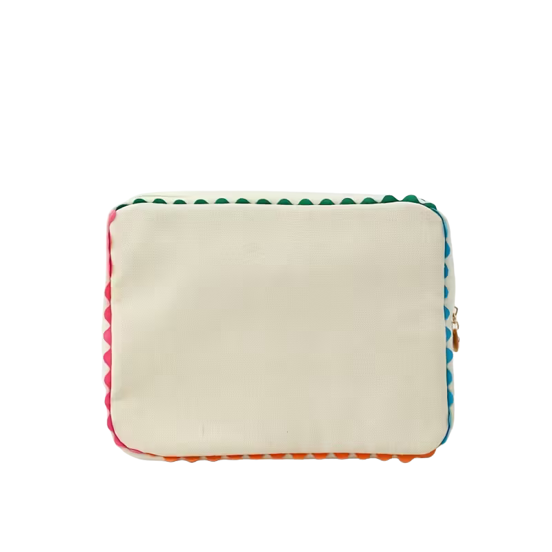 This cheerful canvas tote brings serious style to your everyday carry. Featuring a delightful ric rac scallop design, it's the perfect companion for beach getaways, shopping trips, and everything in between. The generous capacity keeps all your essentials in check, while the zippered closure ensures nothing goes missing. Built tough from quality canvas that's machine washable, this bag handles whatever life throws at it—literally. From cabana lounging to boat adventures to quick errands around town, this playful carryall proves you don't have to choose between looking good and staying organized.